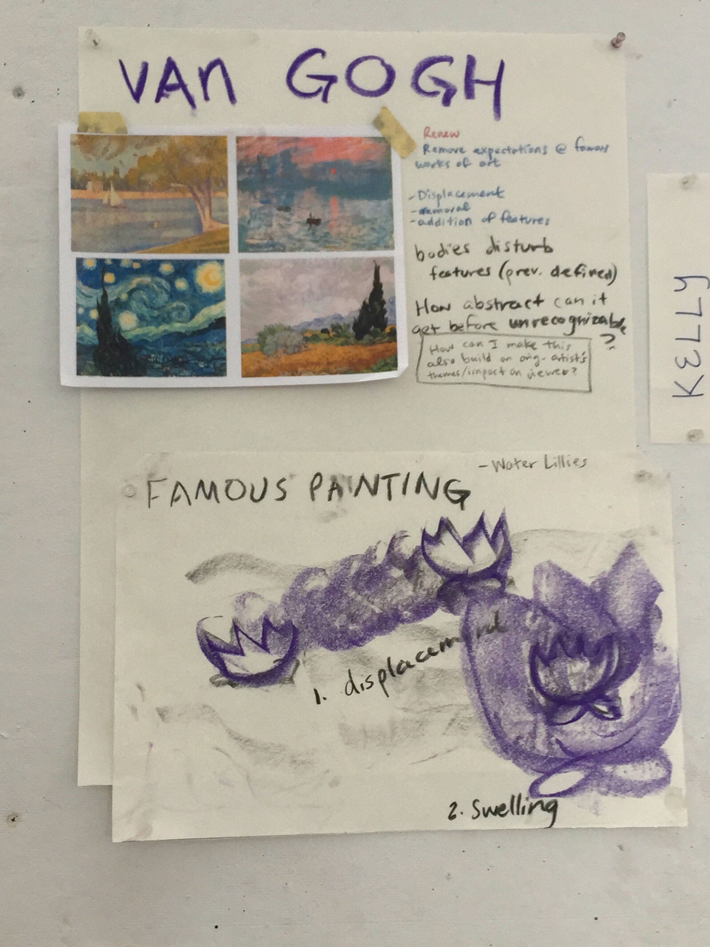 Drawing inspiration from the work of Camille Utterback and Theodore Watson, and Petros Vrellis' interactive Starry Night app, I started with some early sketches.