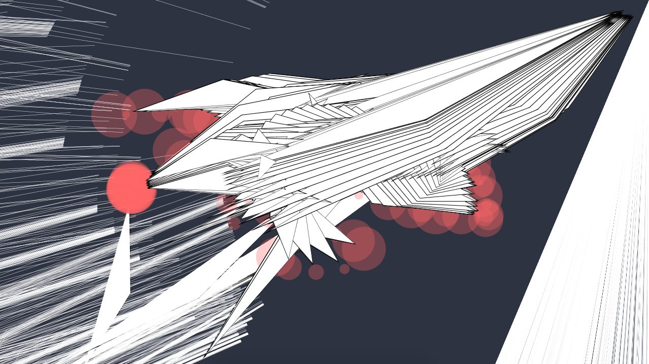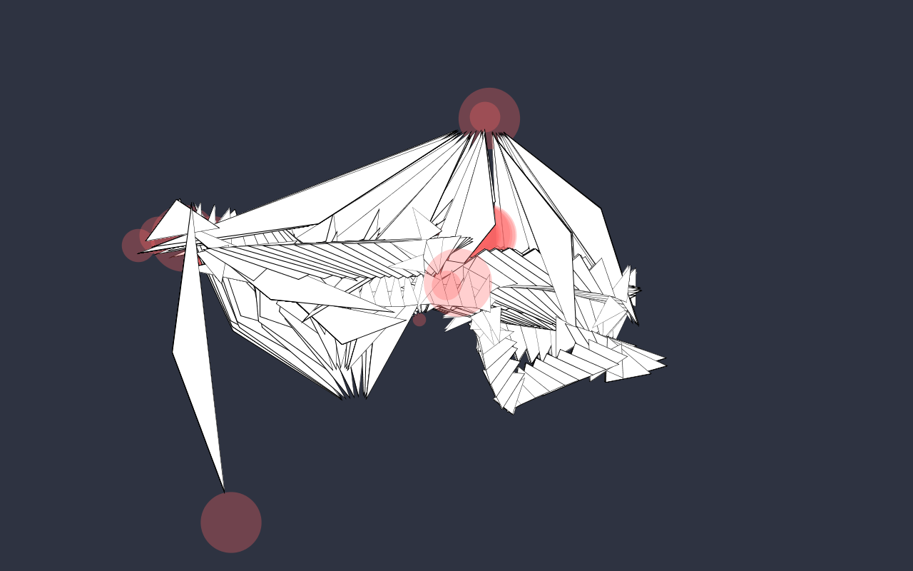 Split is an interactive art piece that moves in digital space while you move in physical space. If you move quickly, bold triangular blades lance across the screen to meet you where you stand. Move slowly, and they lag and glitch, uncertain of where to go. This interactive, computational art installation is generated by custom software written in Processing. A webcam sitting atop the screen captures a continuous video feed, which is processed by a facial recognition algorithm. Found faces are tracked and mapped in real time to a 2D array of pixels, and then translated to a reactive video display.